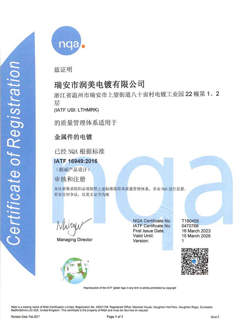 電鍍鋅鎳合金,電鍍鉛錫合金,瑞安潤美電鍍有限公司 關于我們 企業榮譽 新聞中心 產品展示 電鍍案例 潤美招聘 在線留言 聯系我們